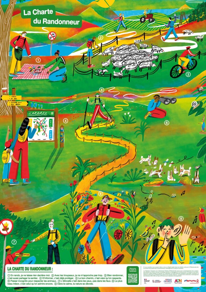 4. Refermons les clôtures et les barrières après notre passage. Sur les chemins, nous sommes toujours sur la propriété d’autrui. Ne dégradons ni les cultures, ni les plantations et ne dérangeons pas les animaux domestiques ou troupeaux.